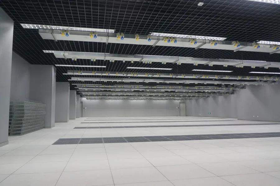 頂棚內有大量的管線以及照明燈具等其它設備。為了美化機房環境,同時也為了吸音及節約空調能耗,一般在原頂棚下加一層吊頂。吊頂材料應滿足吸音、防火、防塵、防潮要求及有效地防止電磁波干擾。國內多采用鋁合金及輕鋼作龍骨,安裝吸音鋁合金板。